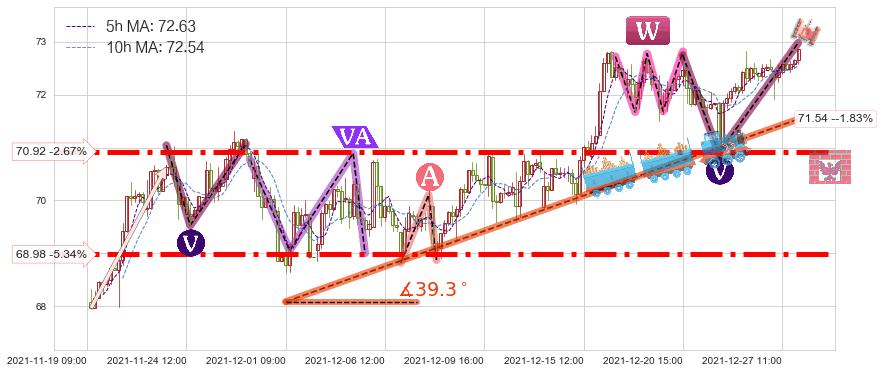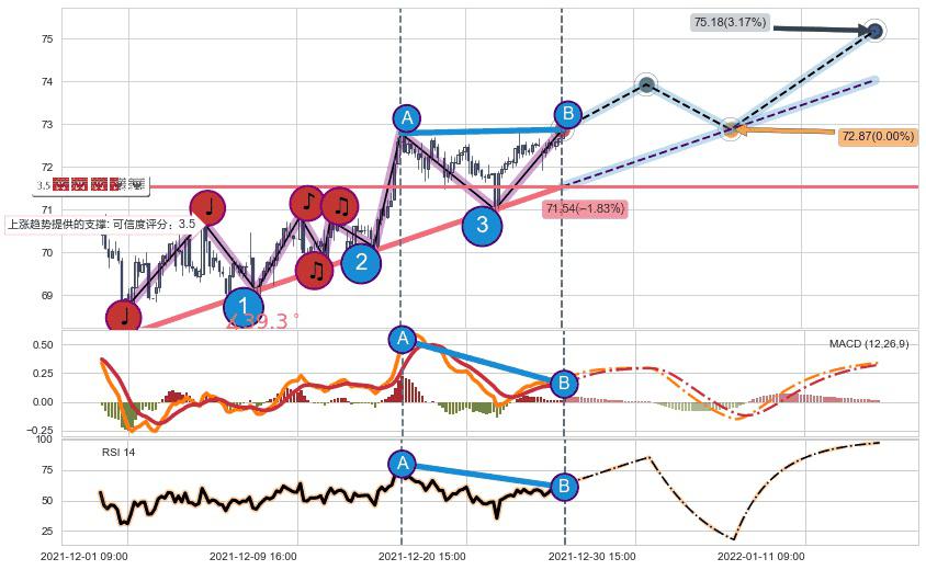 ➣ 预测:2022-01-06 09:00,【试探支撑】稳定目前上涨趋势的前提下,预测价格:72.87