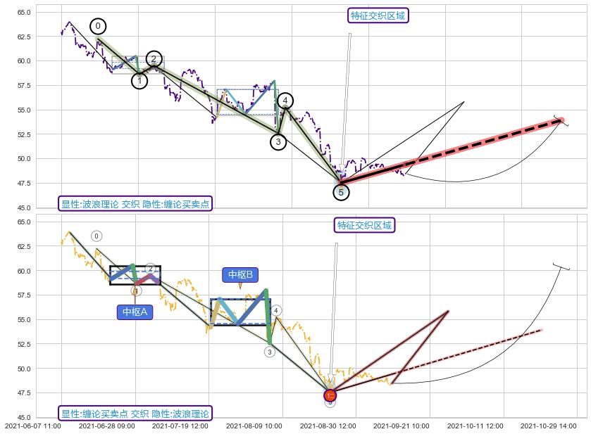 ➣ 缠论买卖点:下降缠中枢AB形成后猜想拐点1买已到达,猜想后续持续拉升(均值回复)