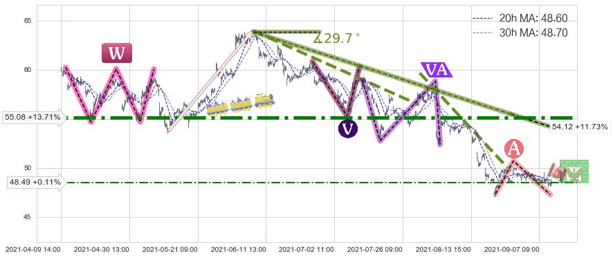 ♘ 阻力价格位48.49,可信任强度35.36%,距离最后交易2021-09-09 15:00形成的收盘价格48.44相差 +0.11%