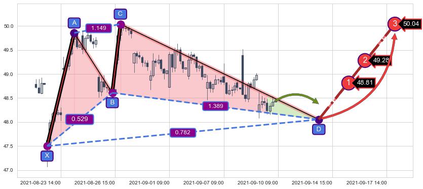 ➣ D点拟合预测价格48.05,距离最后交易收盘价格48.44相差 -0.80%