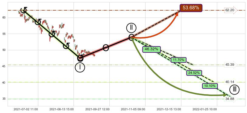 ➢ 循环浪继续向下【最低】位置(02-14:09, 34.88),匹配聚类样本比例21.80%, 可能性概率10.10%