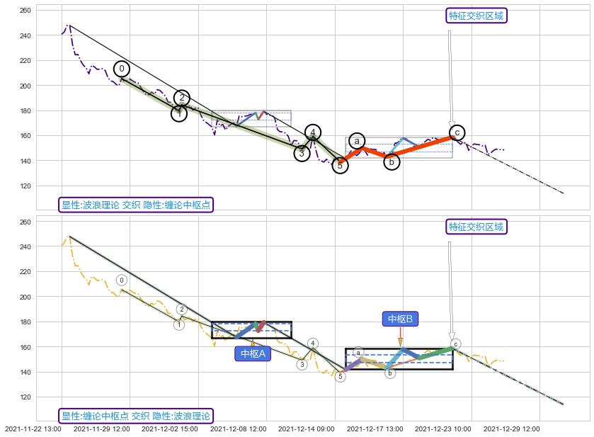 ➢ 波浪理论与缠论中枢点信号事件周期长度级别相同,同周期信号事件