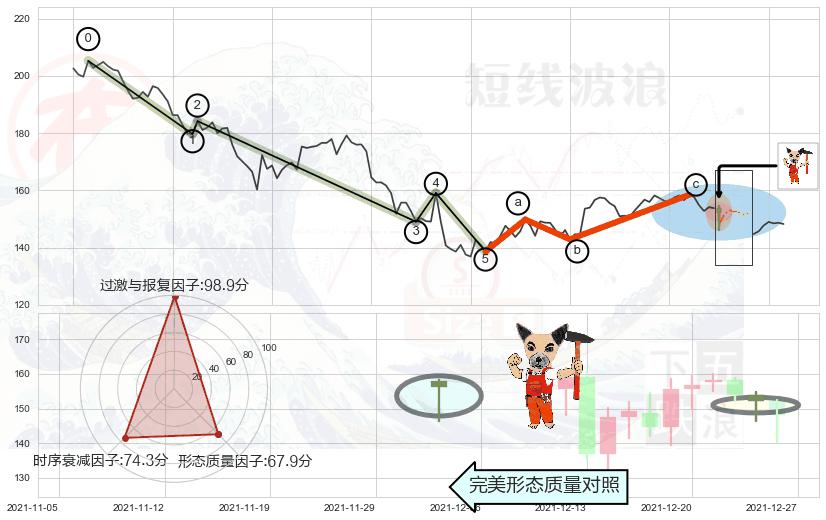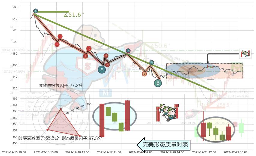 从2021-11-23 09:00至2021-12-27 15:00,共包含160个小时,阶段股价下跌-47.79%,阶段股价变动位移路程比: 1 : 5