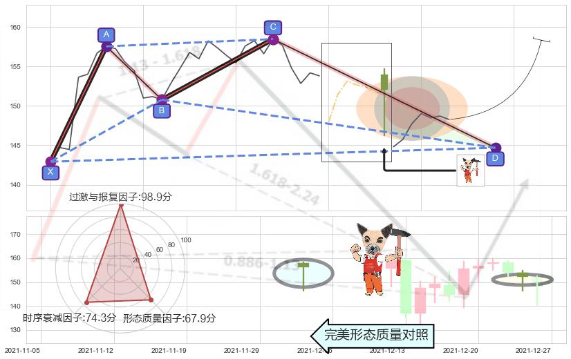➣ 未完成【鲨鱼】形态起点X: 12-16:14, 已到达C点: 12-22:10, 预测最终D点: 12-28:12, 共43交易小时