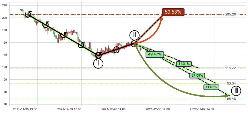 ➢ 循环浪继续向下【最低】位置(01-12:14, 68.46),匹配聚类样本比例22.38%, 可能性概率11.07%