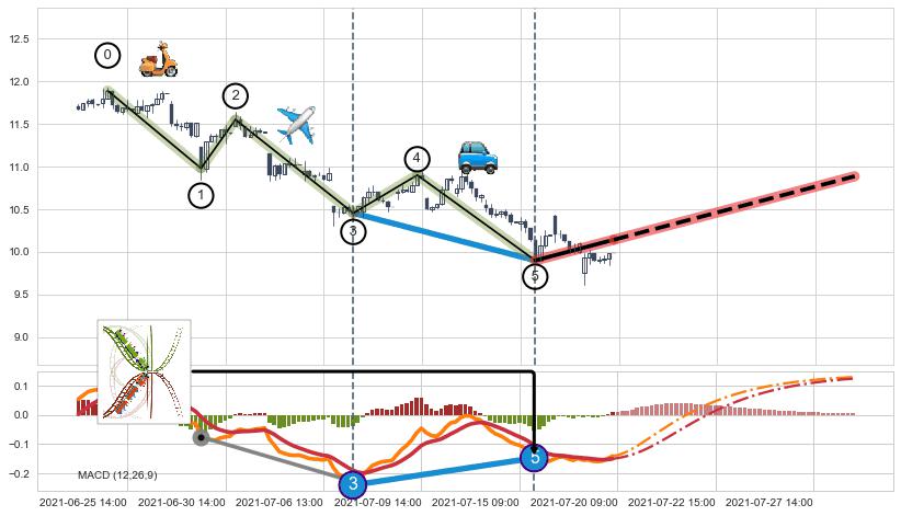 ➣ 波浪理论:猜想达到c点后小回调终止反转上涨 → 上涨 → 【拐点】临近 → 阶段均值回复结束后继续大周期趋势跟踪