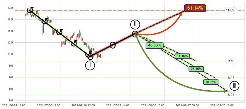 ➣ 大趋势循环浪继续向下概率48.86%
