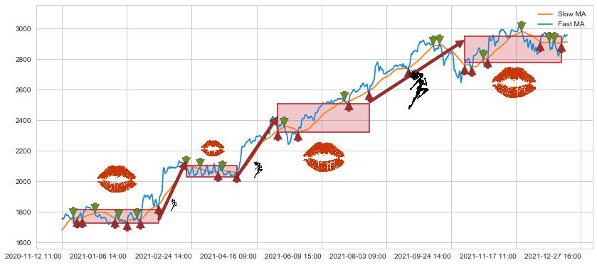 02-22 09:00至03-30 14:00 慢线与快线多次接触,存在上下穿越,有缠绕