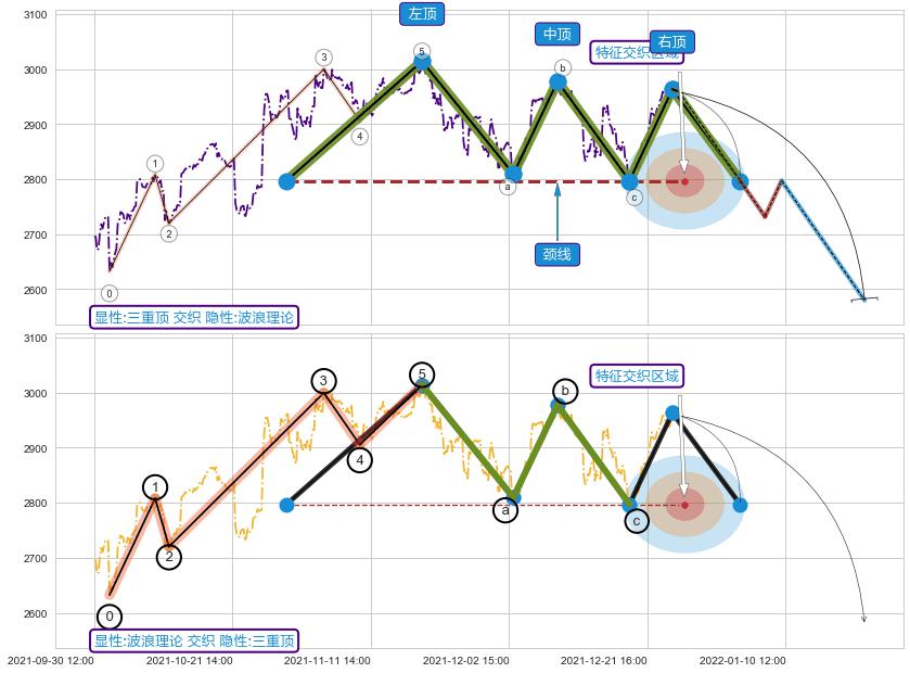 ➢ 三重顶与波浪理论信号事件周期长度级别相同,同周期信号事件