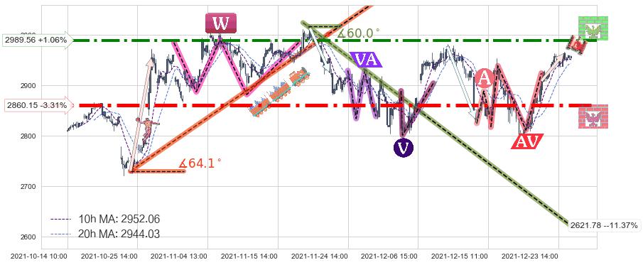 ♘ 阻力价格位2989.56,可信任强度73.18%,距离最后交易2021-12-27 15:00形成的收盘价格2958.13相差 +1.06%