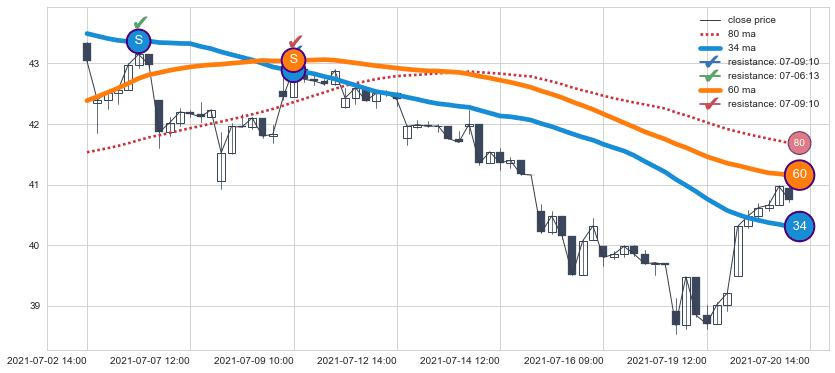➣ 60小时均线于(09-07 14:00: 39.62)形成【死叉】基于【死叉历史模型】预测死叉后最低波谷价格: 37.29, 死叉后最低价格37.93,尚未达到预测最低波谷价格, 预期继续下跌