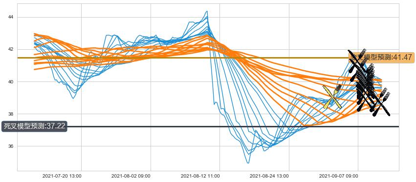 ➢ 13小时均线于(09-03 14:00: 41.25)形成【死叉】基于【死叉历史模型】预测死叉后最低波谷价格: 39.79, 死叉后最低价格37.93,已经下跌超出预测最低波谷价格, 预期反弹