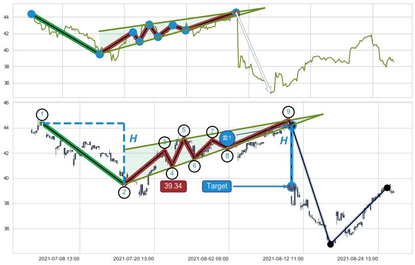 ➢ 最小中继整理跌幅→𝐇: 4.86 (𝐇楔型旗杆的长度:楔型起点→顶点)