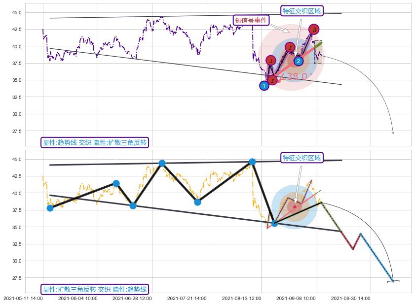 ➢ 2021-08-17 11:00-2021-09-08 09:00上升趋势存在反转[风险],其原上升趋势的支撑位(40.45)已破位[强阻力信号],原上升趋势角度: 38.0˚