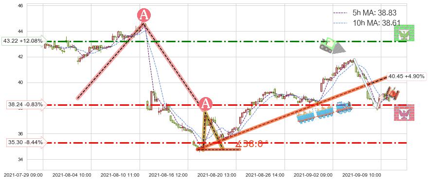 ➣ 2021-08-17 11:00-2021-09-08 09:00上升趋势存在反转[风险],其原上升趋势的支撑位(40.45)已破位[强阻力信号],原上升趋势角度: 38.0˚