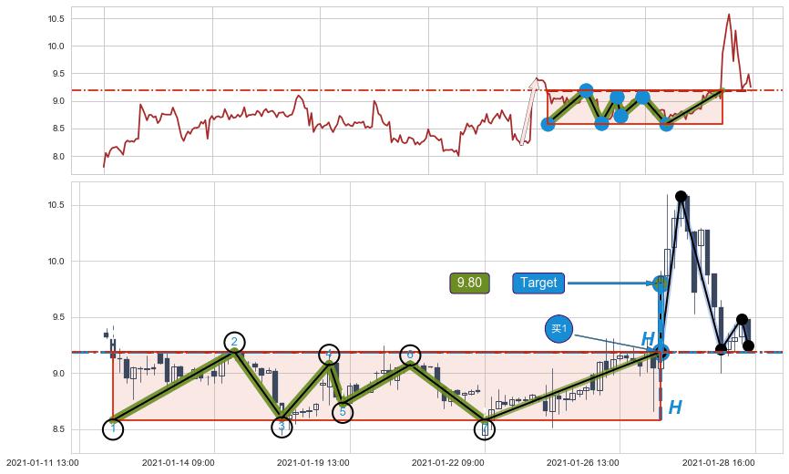 ➢ 【买1】: 激进型 买点 →(01-27:11: 9.19 )形成突破上涨矩形整理【整理】形态