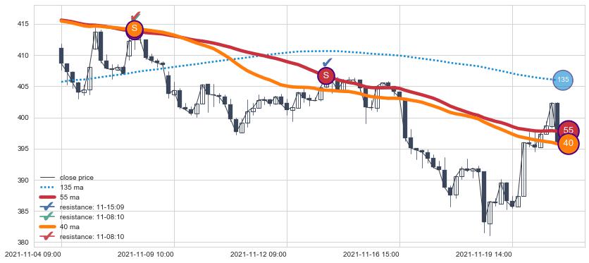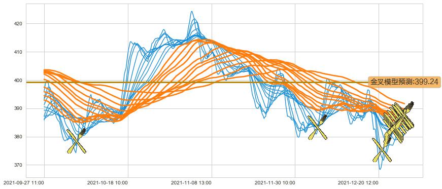 ➢ 55小时均线于(12-22 15:00: 383.65)形成【金叉】基于【金叉历史模型】预测金叉后最高波峰价格: 394.27, 金叉后最高价格388.03,尚未达到预测最高波峰价格, 预期继续上涨