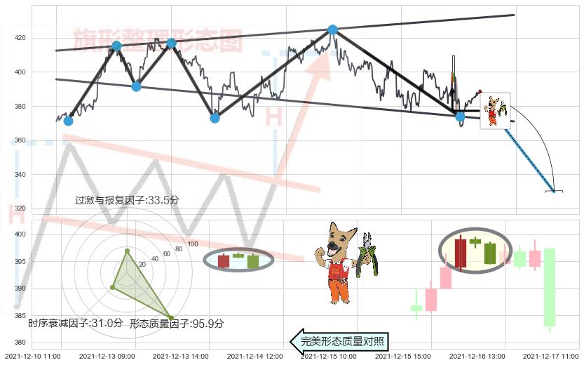 🦴 长线均值回复组合短线趋势跟踪[强阻力信号]2021-10-26 10:00-2021-12-27 14:00下跌趋势依然成立(下跌趋势跟踪依然存在),短线价格略微上行反弹(均值回复猜想),即将接近下跌趋势提供的未破位阻力价格:391.52。