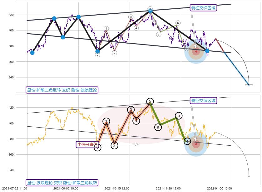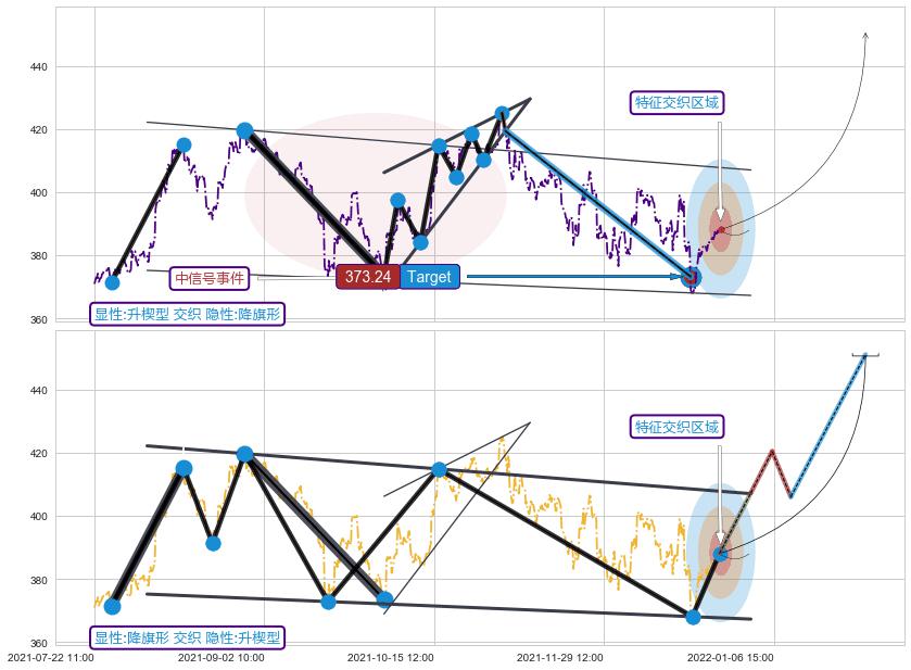 ➣ 预测:2022-01-31 10:00,【试探阻力】稳定目前下跌趋势的前提下,预测价格:366.24
