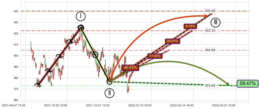 ➢ 循环浪继续向上【最高】位置(03-03:15, 439.94),匹配聚类样本比例20.06%, 可能性概率8.13%