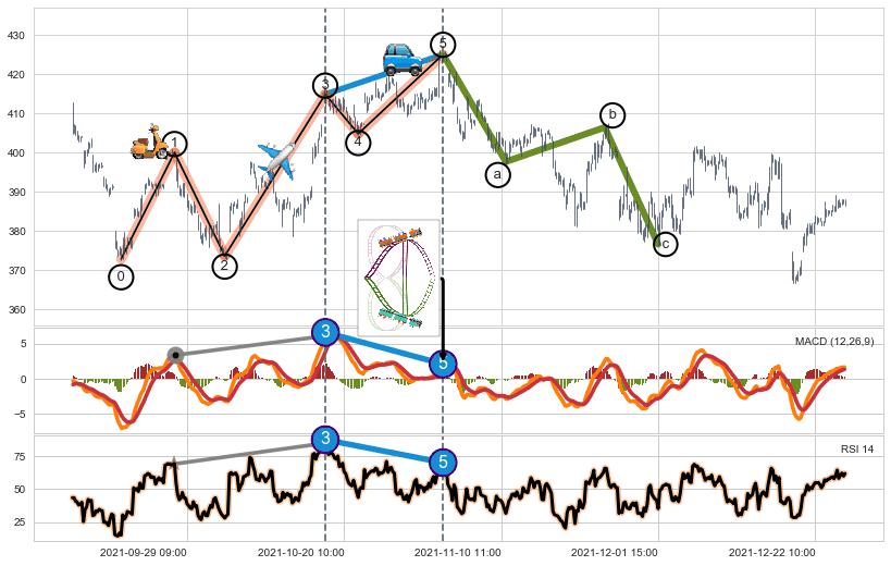 ➣ ['回调abc识别为: 【锯齿型调整浪】 ', '锯齿型:子浪535结构 ⓑ点振幅较小,ⓒ点继续发力远超ⓐ点结束位置']