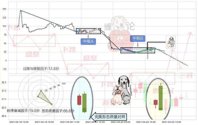 ➣ 射击之星形态 + 缠论中枢点破位中枢B支撑下拉信号叠加后【信号初始稳固度】高,【看空】信号叠加【可信度影响大】