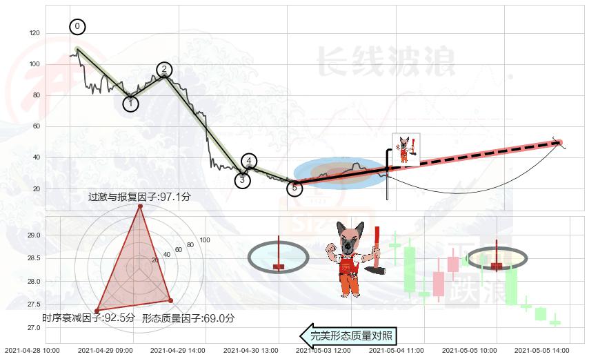➢ 🕰 价格走势在2021-05-03 10:00:00至2021-05-03 11:00:00期间形成底部尽头线(上山虎),残存影响值:5.27