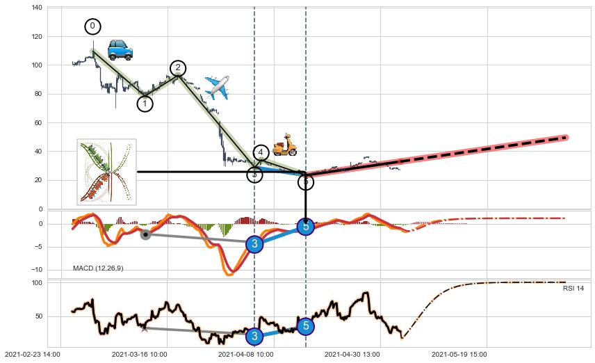 ➣ 底部尽头线(上山虎) + 波浪理论下跌浪:浪5反弹拐点信号叠加后【信号初始稳固度】极低,【看多】信号叠加【可信度影响极小】