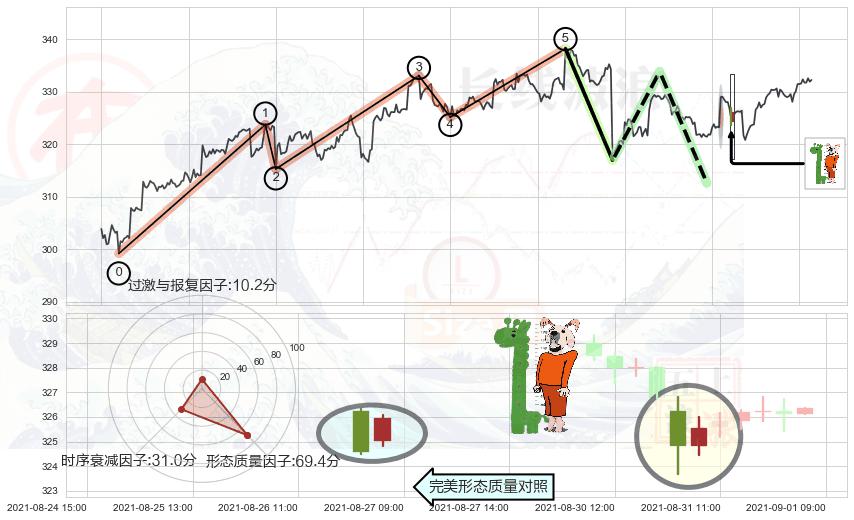 ➢ 🕰 价格走势在2021-08-31 09:00:00至2021-08-31 10:00:00期间形成中流砥柱形态,残存影响值:2.31
