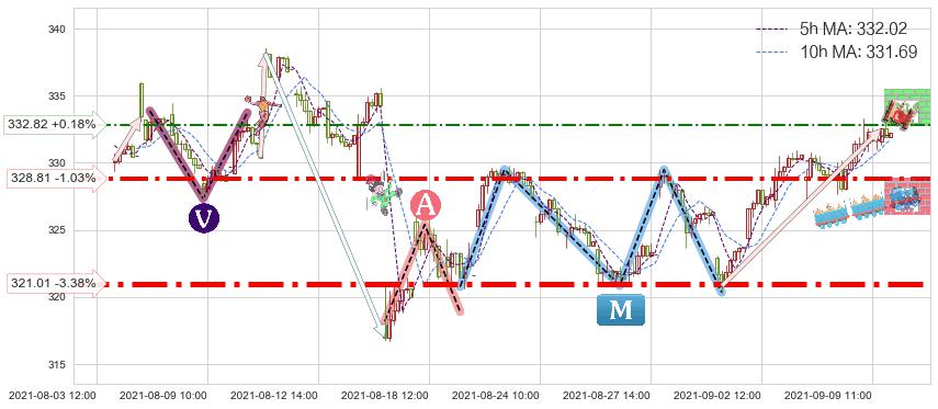 ♘ 阻力价格位332.82,可信任强度51.28%,距离最后交易2021-09-09 15:00形成的收盘价格332.22相差 +0.18%