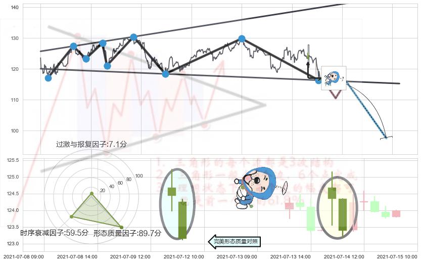 ➢ 🕰 价格走势在2021-07-14 09:00:00至2021-07-14 10:00:00期间形成下跌螺旋桨,残存影响值:-3.35