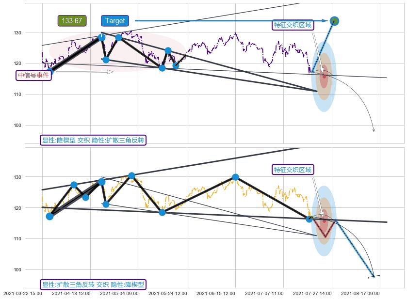 ♘ 阻力价格位128.85,可信任强度98.01%,距离最后交易2021-07-19 15:00形成的收盘价格117.01相差 +10.12%