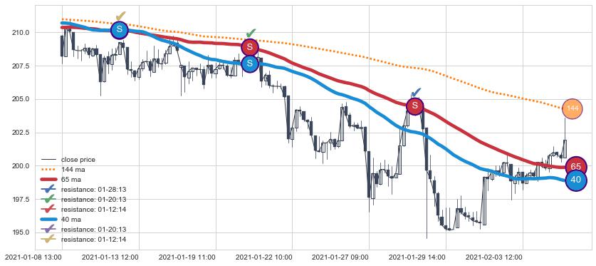 ➢ 最优均线组合共正确确认支撑阻力信号13处,正确确认率 72.22%