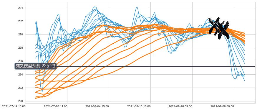 ➣ 30小时均线于(09-01 09:00: 231.41)形成【死叉】基于【死叉历史模型】预测死叉后最低波谷价格: 227.34, 死叉后最低价格222.64,已经下跌超出预测最低波谷价格, 预期反弹