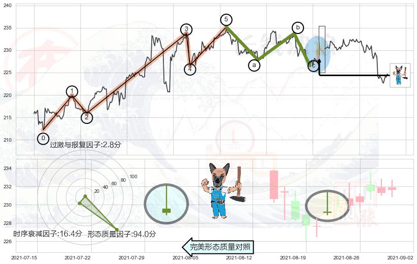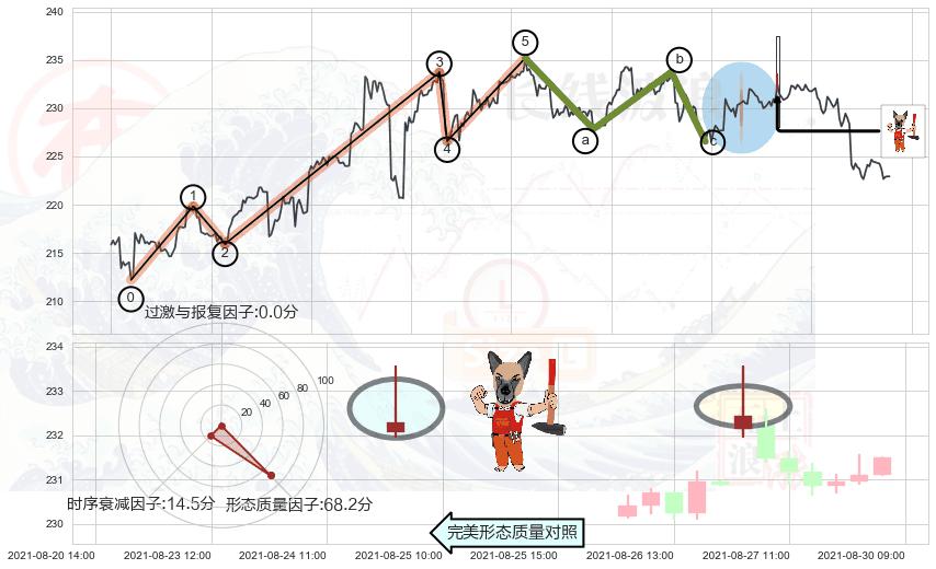 从2021-07-22 12:00至2021-08-11 11:00,共包含94个小时,阶段股价上涨0.32%,阶段股价变动位移路程比: 1 : 78