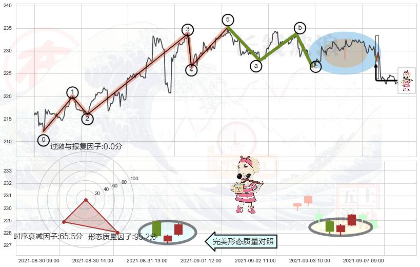 ➢ 🕰 价格走势在2021-09-02 10:00:00至2021-09-02 11:00:00期间形成底部尽头线(上山虎),残存影响值:2.06