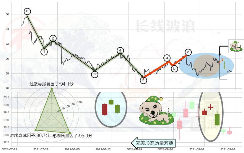 ➢ 黄昏之星(夜星) 🔜 波浪理论c点反弹终止反转下跌 综合量化分数:46.98 【中性】