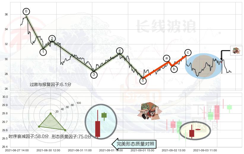 ➢ 下跌镊子线(n形磁铁) 🔜 波浪理论c点反弹终止反转下跌 综合量化分数:48.70 【中性】