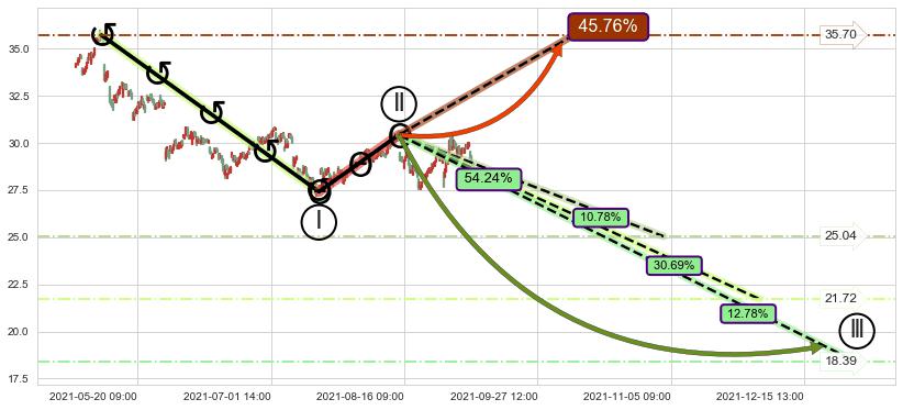 ➣ 下跌螺旋桨 + 波浪理论c点反弹终止反转下跌信号叠加后【信号初始稳固度】中等,【看空】信号叠加【可信度影响中等】