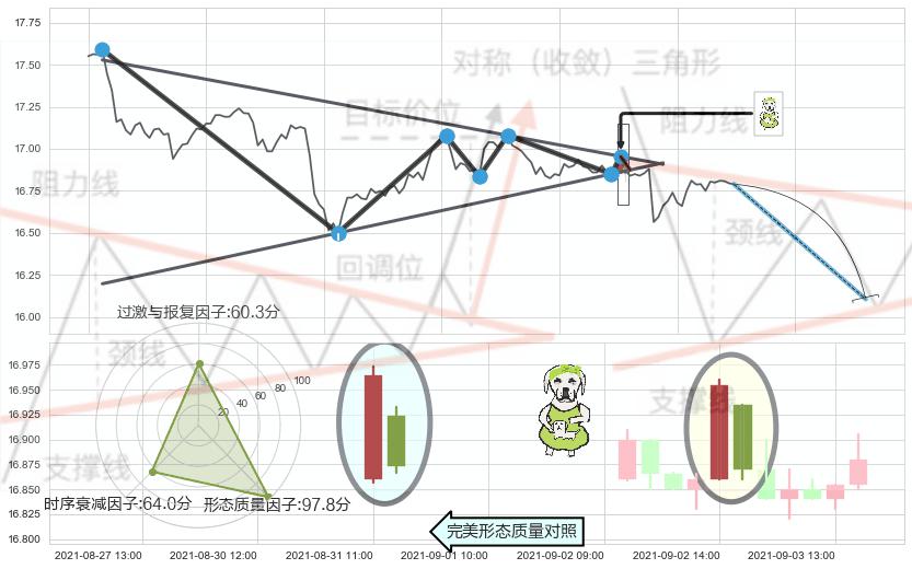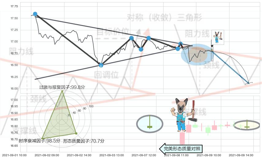 ➢ 【卖1】: 激进型 卖点→(09-03:10: 16.87 )形成突破下降【对称】三角形整理【整理】形态