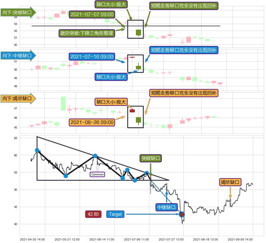 ➢ 2021-08-26 09:00形成:向下跳空【竭尽】缺口