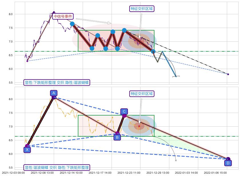 ➢ 下跌矩形整理属【中级别信号事件】谐波蝴蝶属【长级别信号事件】中长周期组合信号事件,中长事件长度比64.55%