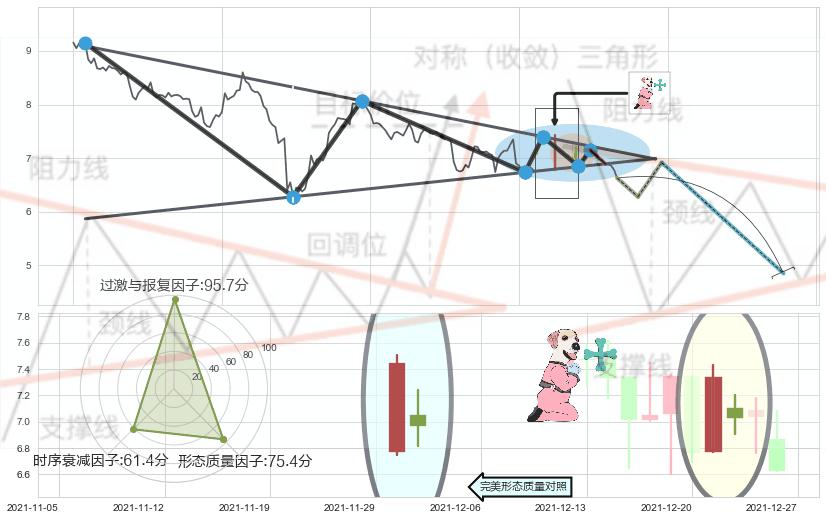 ➢ 下降【对称】三角形整理综合量化分数: 35.87 【强烈看空】