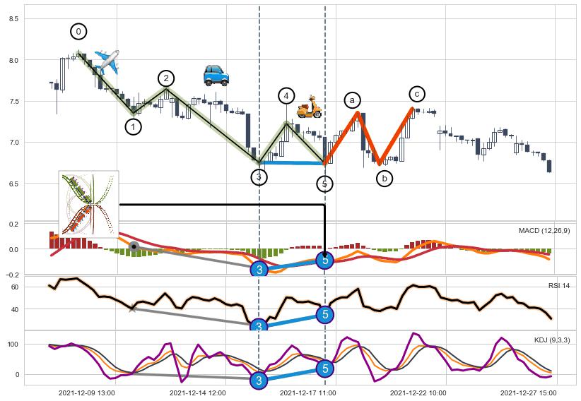 ➣ MACD, RSI, KDJ走势都出现【常规背离】反转信号增强