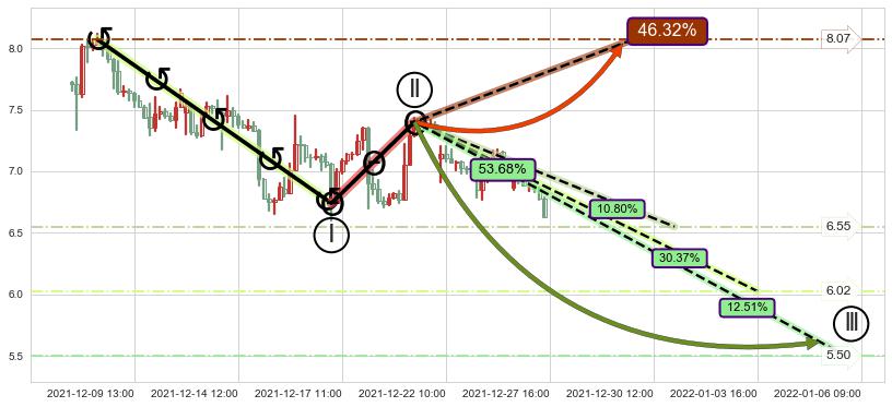 ➢ 循环浪继续向下【最低】位置(01-06:09, 5.50),匹配聚类样本比例23.31%, 可能性概率12.51%