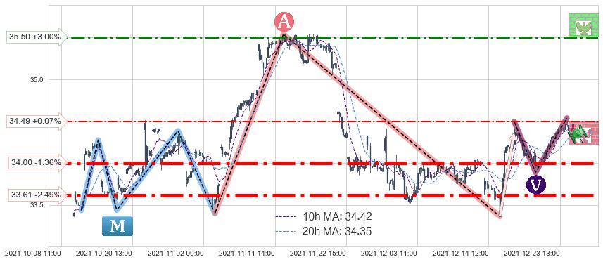 ♘ 阻力价格位35.50,可信任强度57.74%,距离最后交易2021-12-27 15:00形成的收盘价格34.47相差 +3.00%