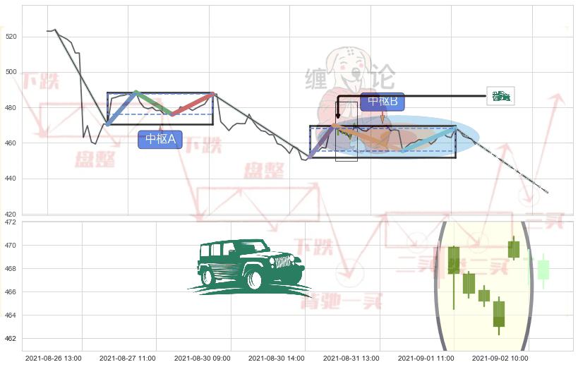 ➢ 【未完成】缠论 起点:08-18:09, 完成第1中枢A,完成第2中枢B,到达09-09:14