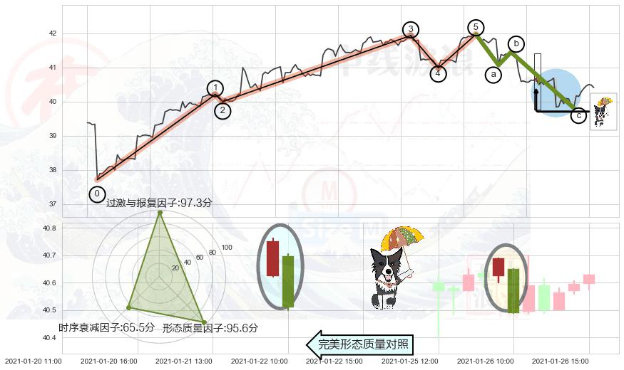 ➢ 🕰 价格走势在2021-01-25 00:00:00至2021-01-26 00:00:00期间形成底部尽头线(上山虎),残存影响值:5.38
