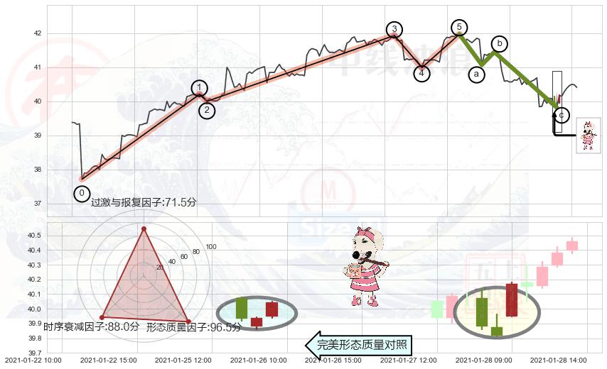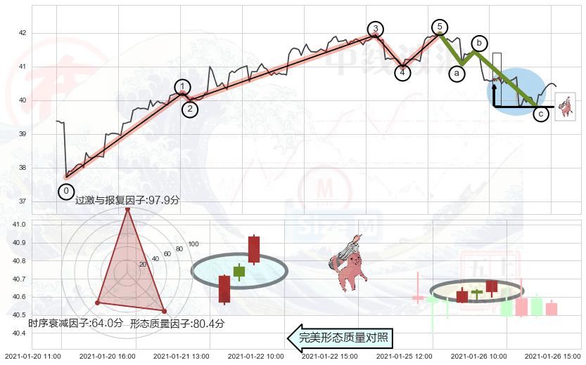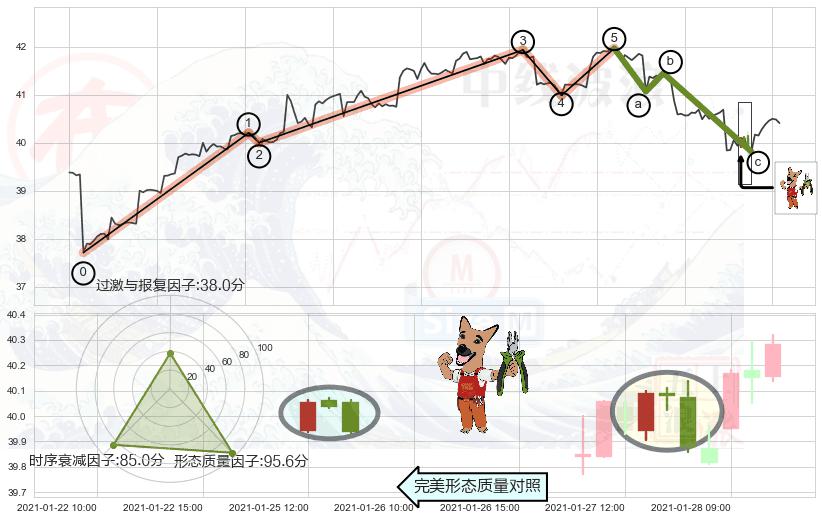 从2021-01-20 16:00至2021-01-27 16:00,共包含40个小时,阶段股价下跌-5.21%,阶段股价变动位移路程比: 1 : 2