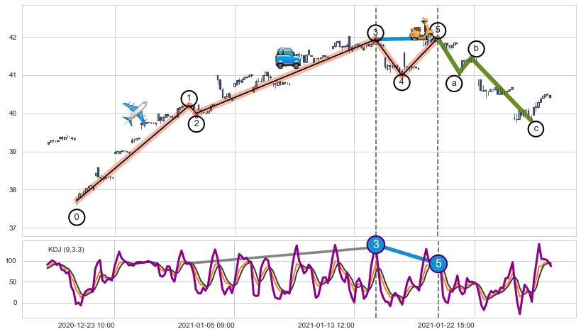 ➣ ['回调abc识别为: 【锯齿型调整浪】 ', '锯齿型:子浪535结构 ⓑ点振幅较小,ⓒ点继续发力远超ⓐ点结束位置']